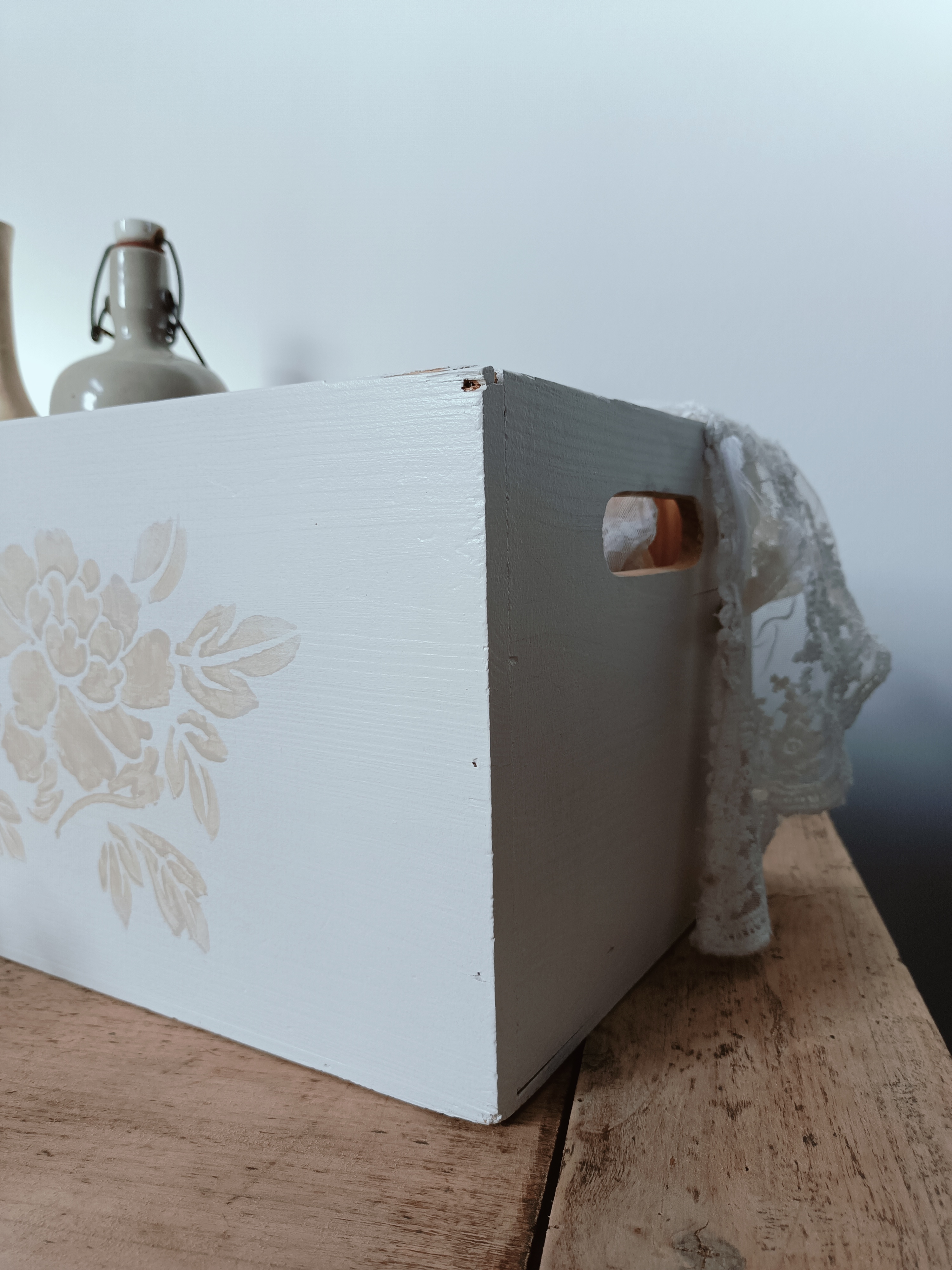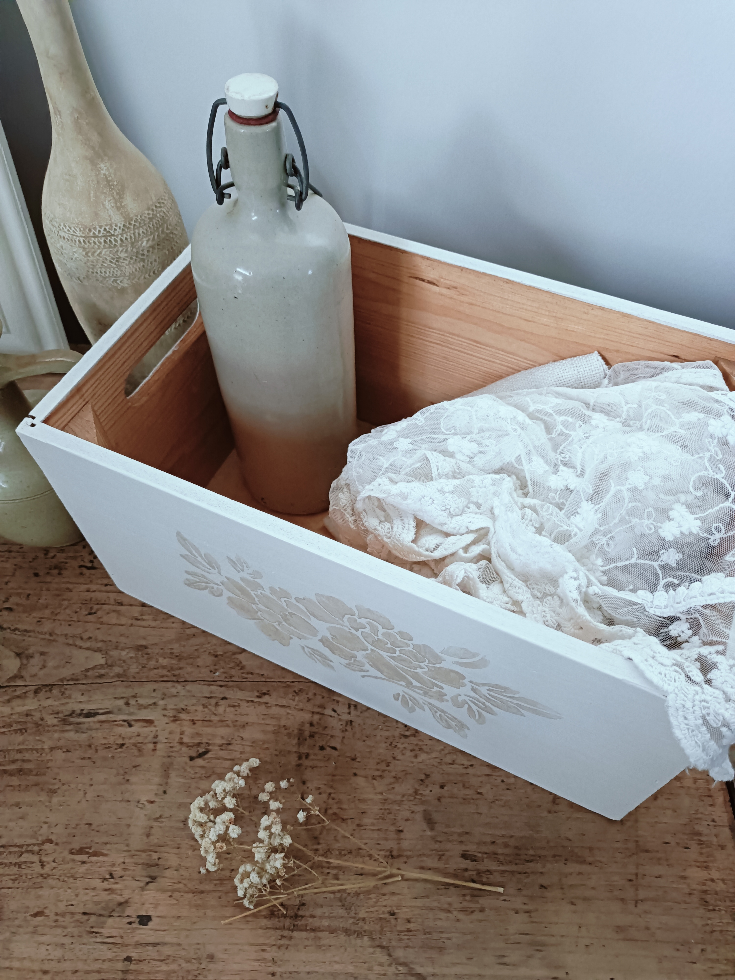 Caisse en pin décorée