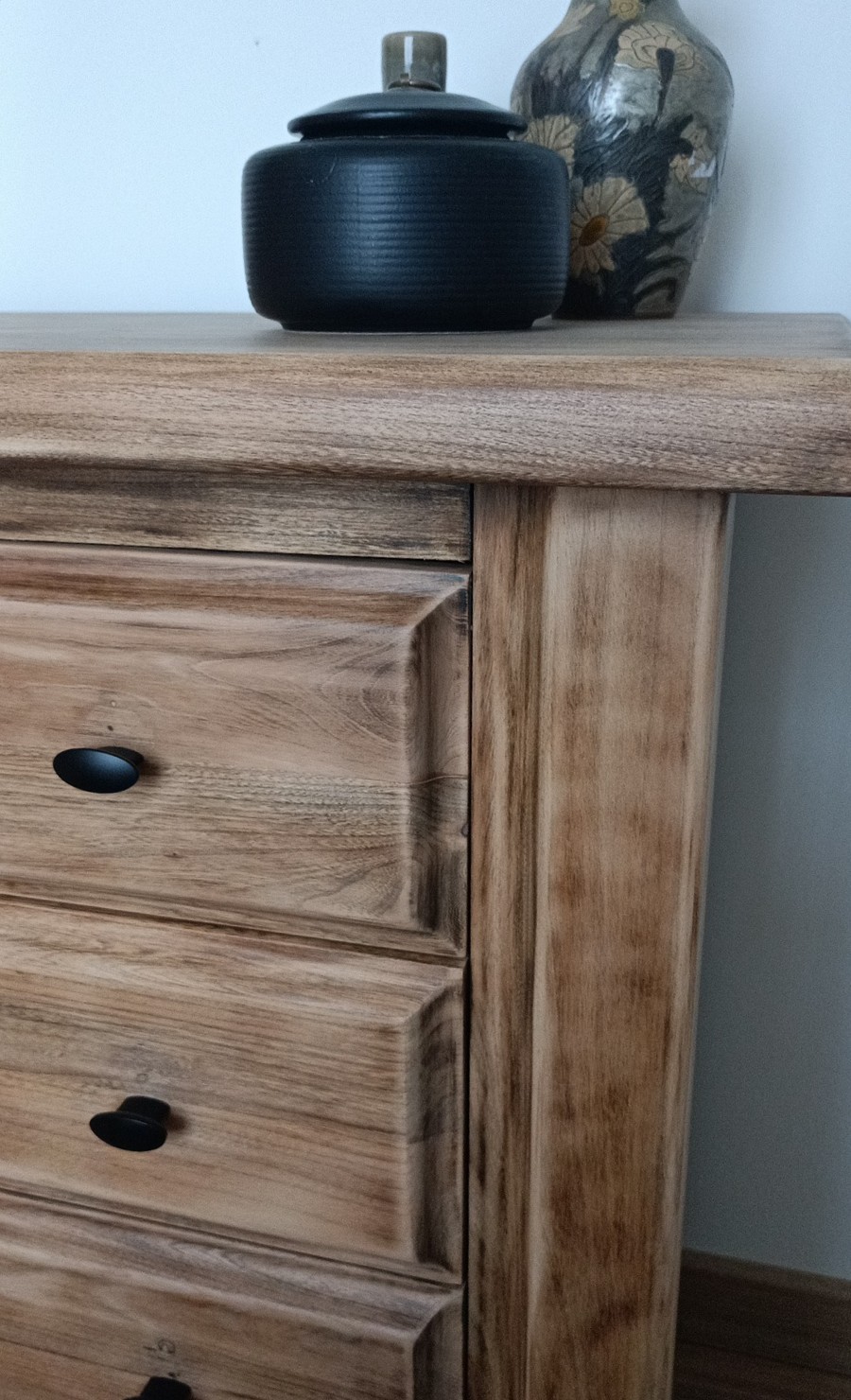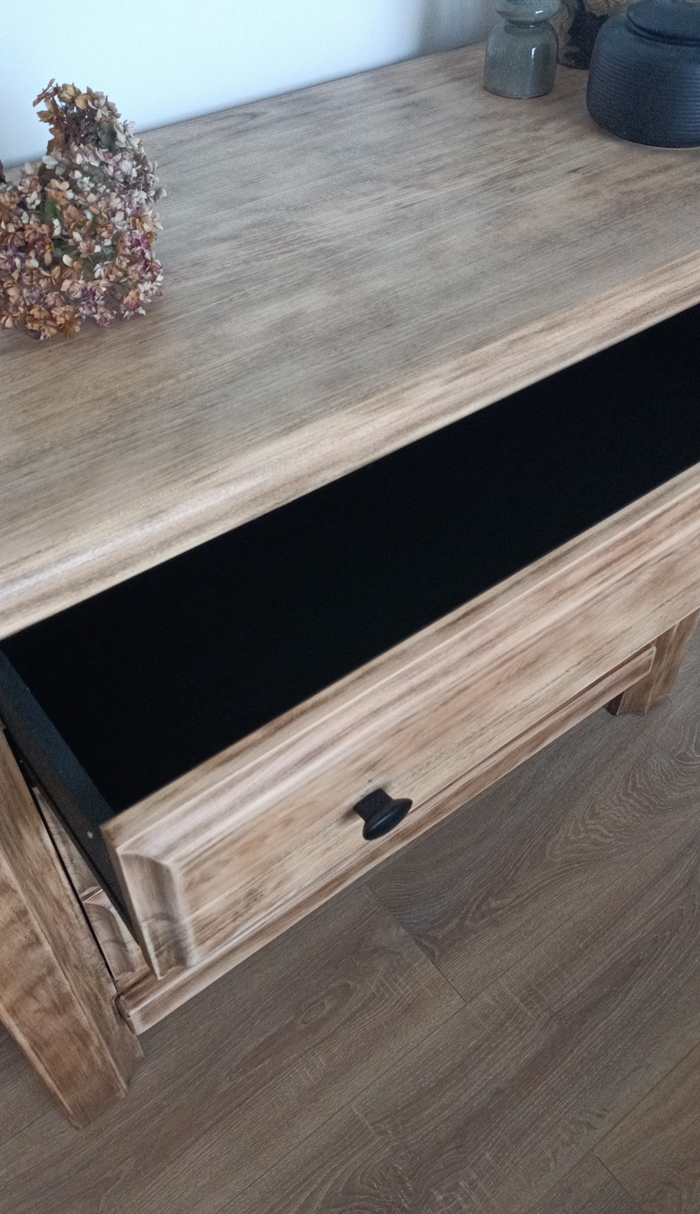 Commode en chêne massif (plateau ossature et façade tiroir) et placage chêne (côtés)