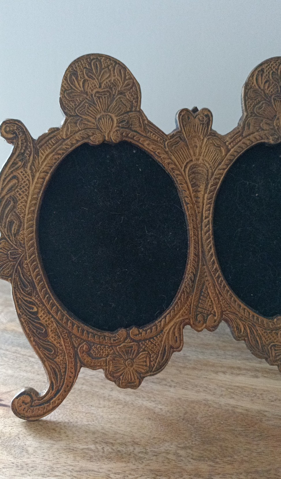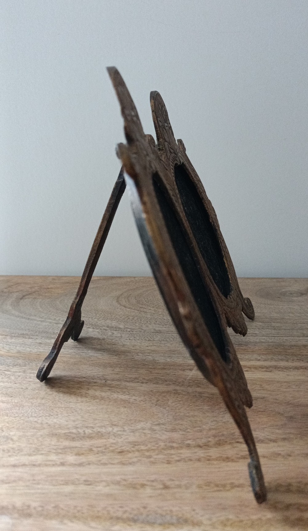 Porte photos ancien en fonte rénové à la cire à dorer.