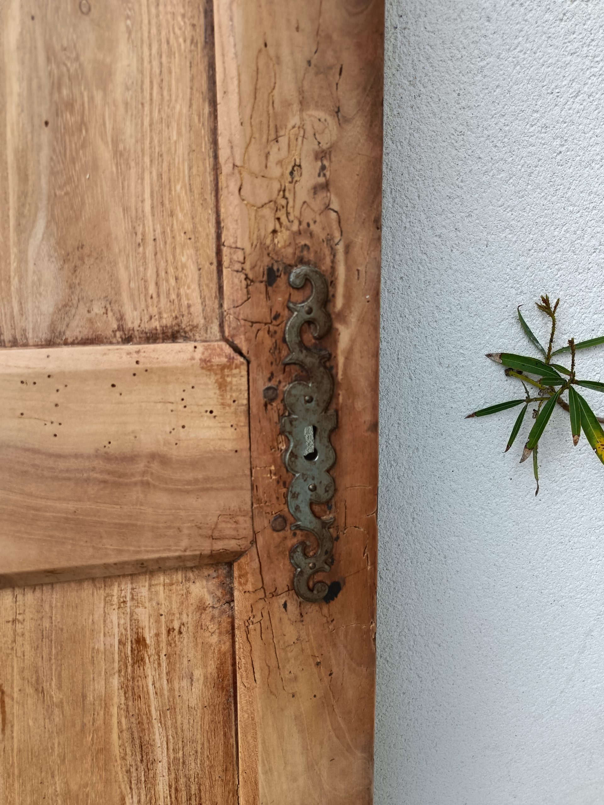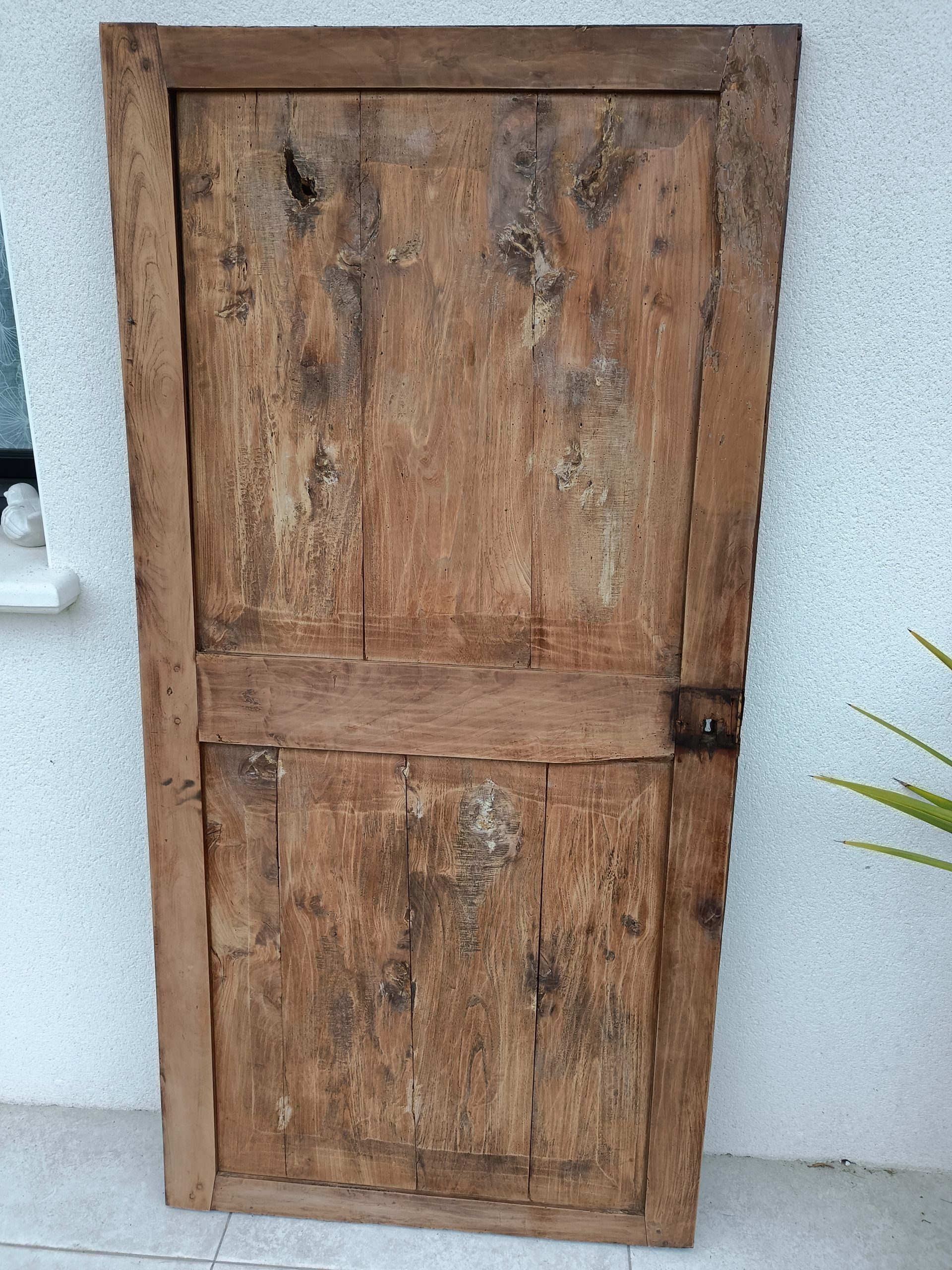 Cette magnifique porte ancienne en merisier massif allie charme authentique et polyvalence.