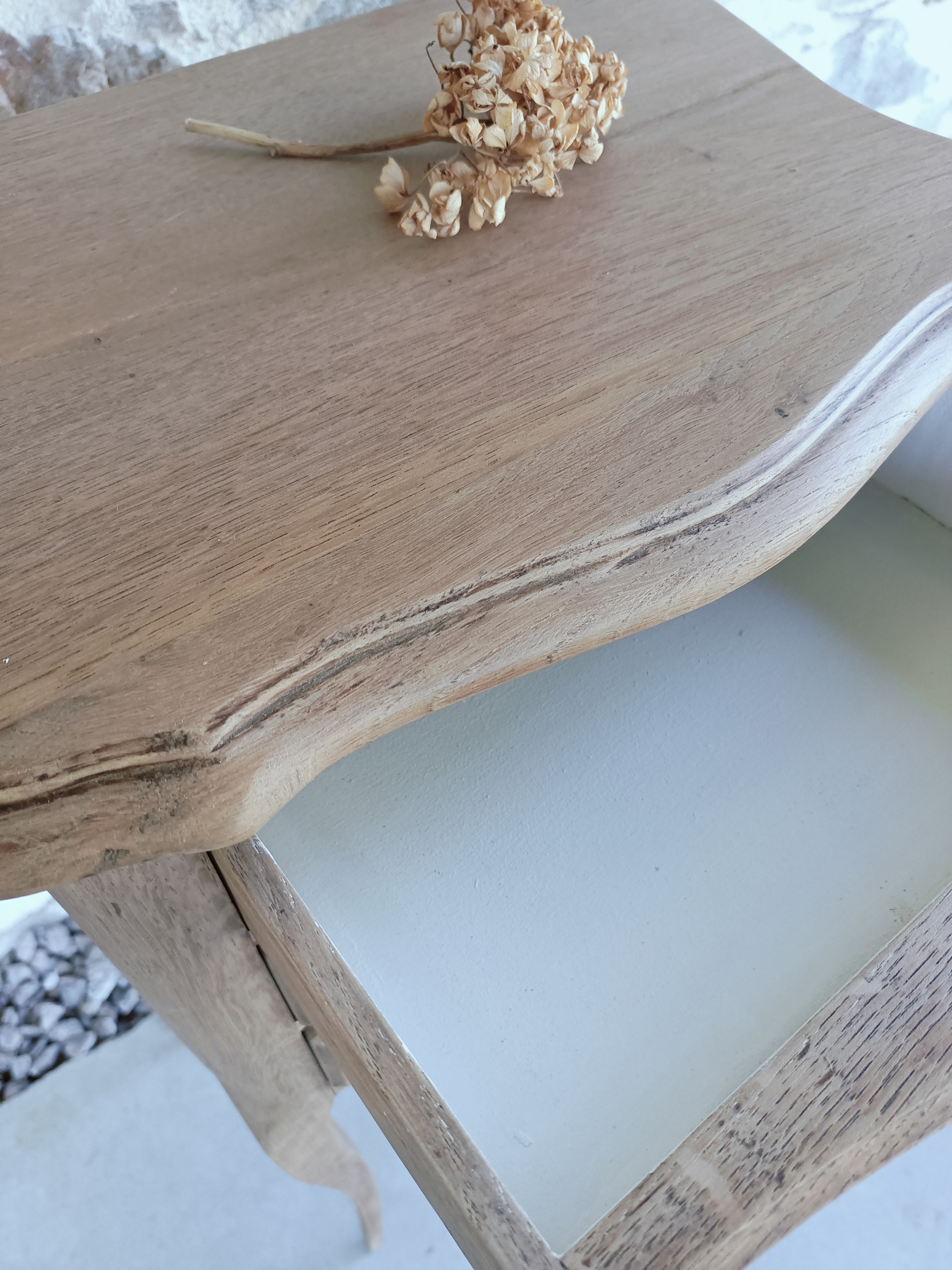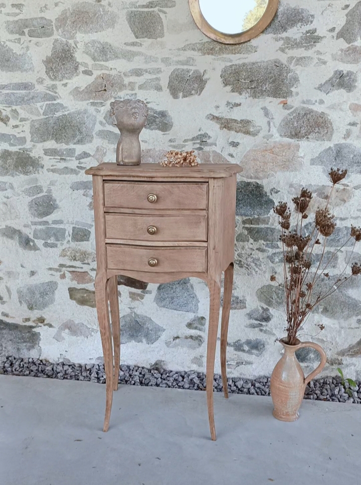 Chevet rénové en chêne massif poncé, traité avec un produit écologique et vernis.