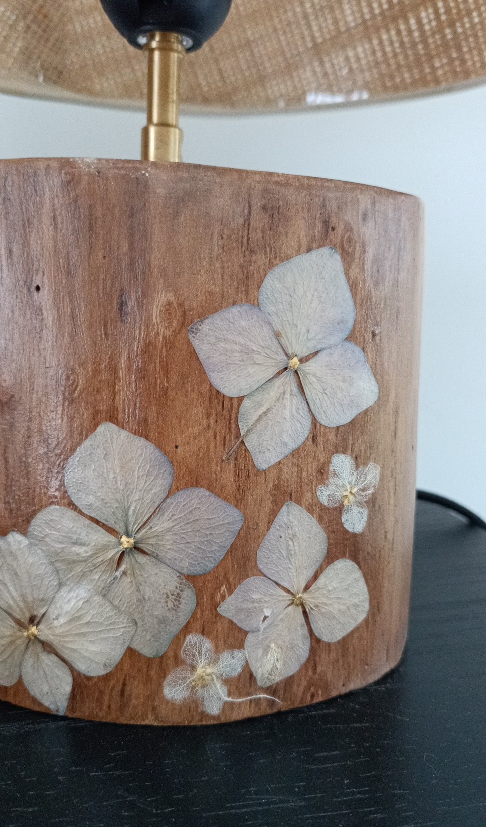 Quelques fleurs d’hortensias séchées agrémentent le pied.